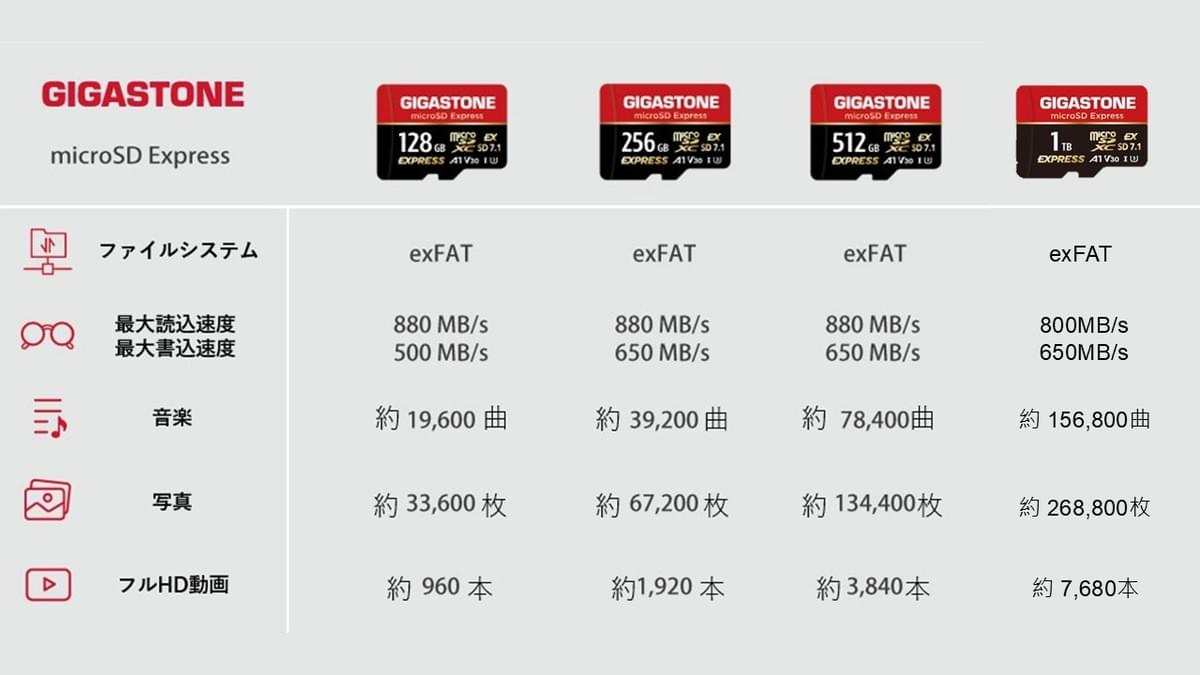 マイクロSD Expressカードの種類容量別スペック