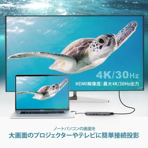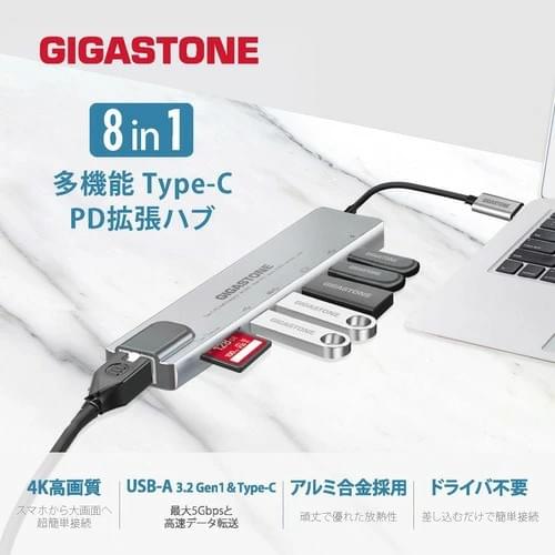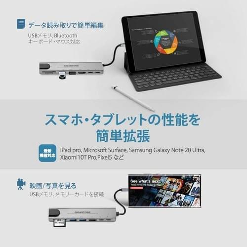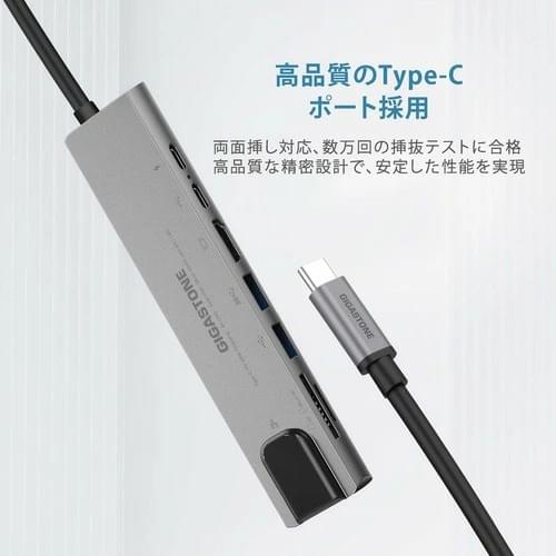 - Type-C 8in1 ハブ、PD65W急速充電可能/5Gbps
