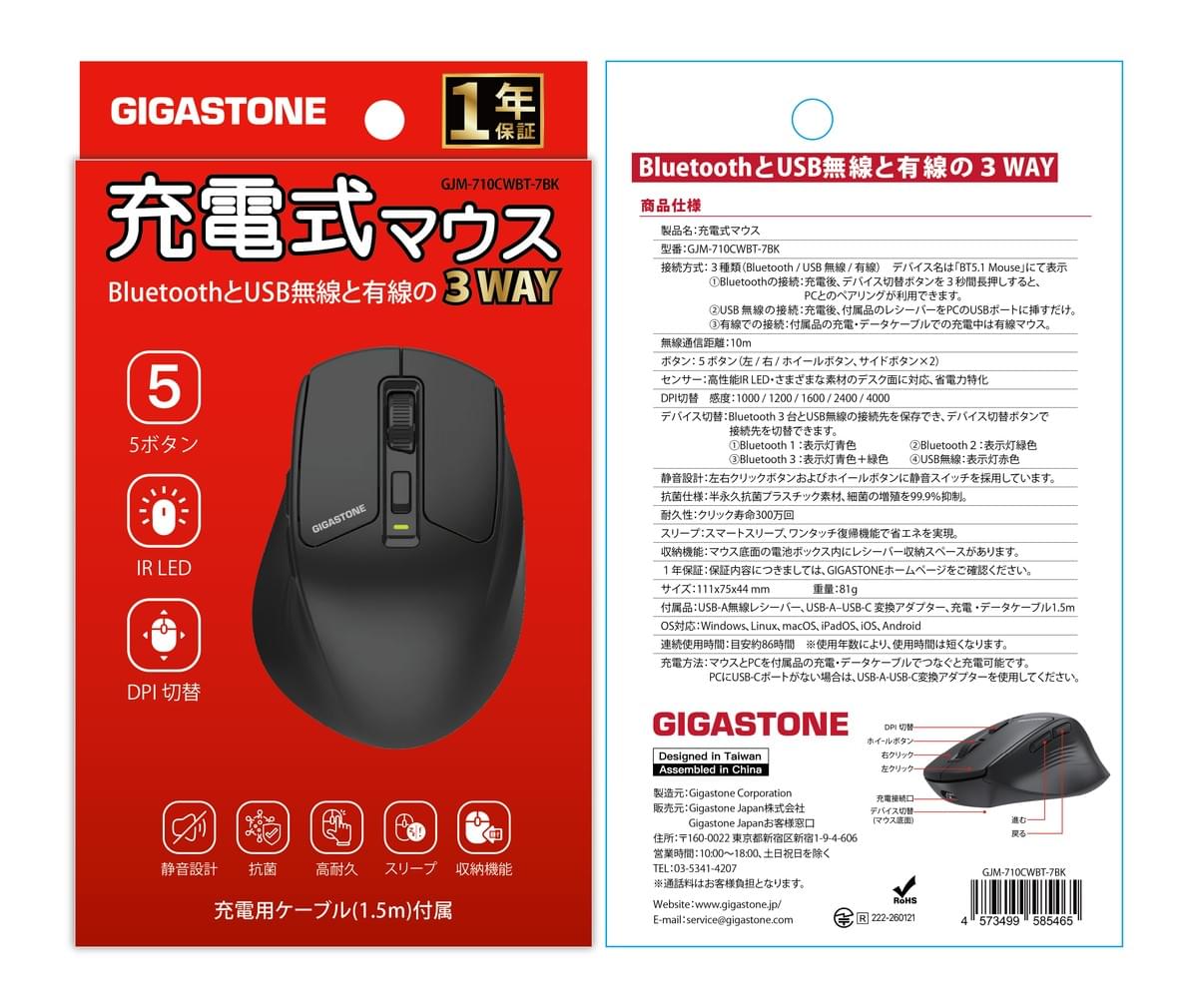 GJM-710CWBT-7BK 充電式マウス
